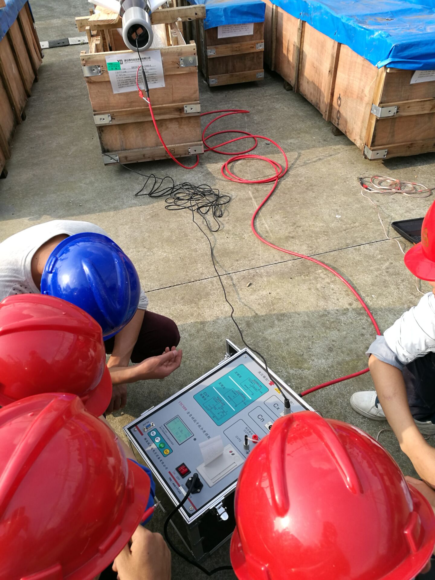 在現(xiàn)場,李工首先對設(shè)備進(jìn)行了簡單的檢查看看設(shè)備是否有損壞,之后開始了對設(shè)備的培訓(xùn)。此次培訓(xùn)的設(shè)備和內(nèi)容很多。李工對各項設(shè)備的使用,接線方法進(jìn)行了實(shí)地操作和詳細(xì)的講解,并對客戶提出疑問的地方,現(xiàn)場給予細(xì)心,準(zhǔn)確的解答。客戶理解能力比較強(qiáng),在設(shè)備培訓(xùn)過程中有的同事就已經(jīng)基本掌握了設(shè)備的操作,隨后,又與客戶一起到現(xiàn)場對被試品進(jìn)行了試驗(yàn)。