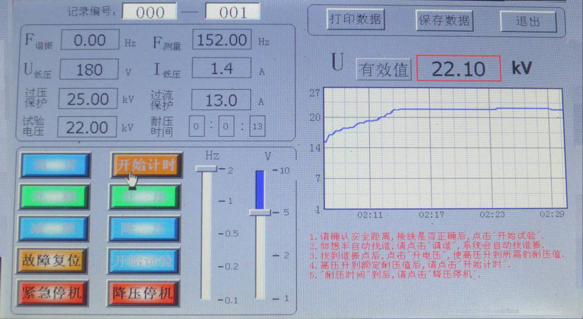 如果沒有階段性耐壓試驗(yàn)時(shí),只需設(shè)置一個(gè)階段試驗(yàn)電壓值和相應(yīng)的試驗(yàn)時(shí)間,其它階段試驗(yàn)電壓和試驗(yàn)時(shí)間設(shè)為0。