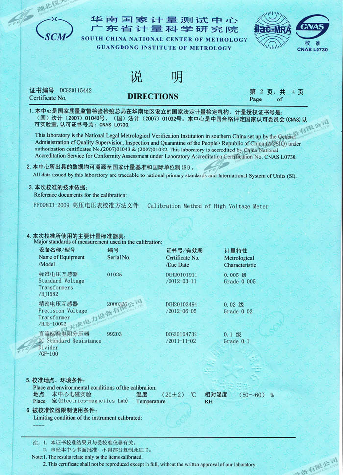 YTC8106-200 交直流分壓器的資質證書